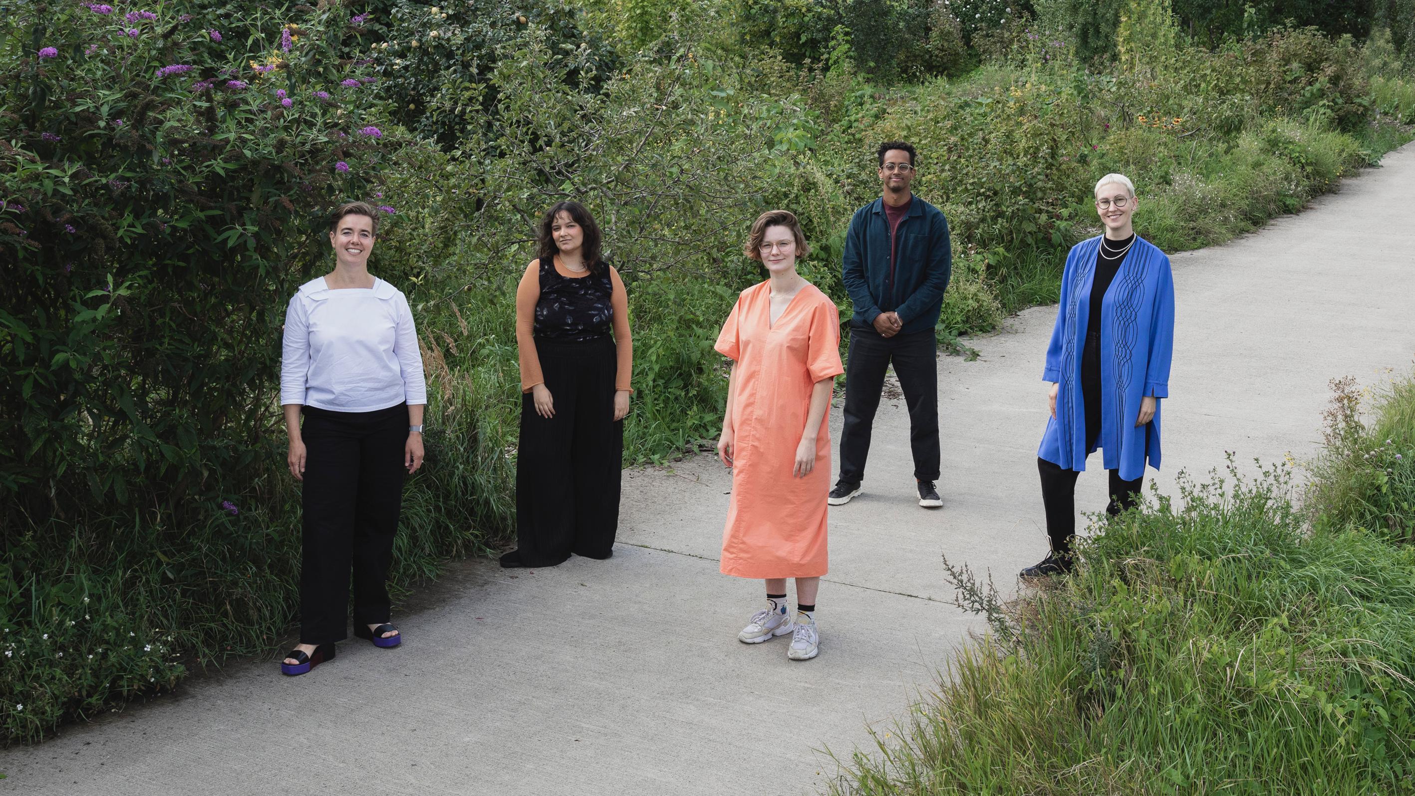 Het curatorenteam van IABR 2024: Nature of Hope bestaat uit Janna Bystrykh, Catherine Koekoek, Hani Salih, Alina Paias en Noortje Weenink.
